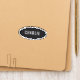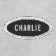 Simple custom name patches on color editable charcoal black background with white border stitching, no minimum order quantity and no setup fee.