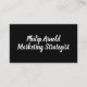 This customizable business card exudes elegance and professionalism with its sleek black background and crisp white text on both sides. The front is designed to feature the name and job title in a clean, modern font, creating a bold, confident impression while keeping the layout simple and refined. On the back, essential contact details—such as phone number, address, and website—are displayed in white text against the black background, ensuring a clear and organized presentation. This minimalist, two-sided design offers a versatile, sophisticated look that’s perfect for leaving a memorable impression.