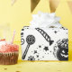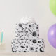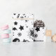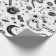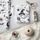 A cute black and white line art design featuring a ghost adorned with a witch hat, surrounded by iconic Halloween elements like a pumpkin bucket, candy canes, lollipops, a bat, and celestial bodies. This minimalist design adds a touch of intrigue to your gift.