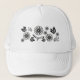 Crisp looking black daisies are scattered across the front of this white hat.