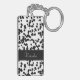 A spotted black and white pattern of dalmatian dog fur. A black banner with white stitches and text runs across. The text can be customized.