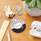 A trendy keychain with a chic black and white damask pattern on the top and sassy pinstripes on the bottom, divided by a girly pink floral frame. Personalize by adding your name. Perfect present for the stylish and fashionable woman who likes stripes and a damask damask pattern.