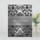 BLACK AND WHITE DAMASK GEM STONE MONOGRAM INVITATION