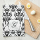 Black and White Damask Initial Kitchen Towel
