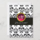 BLACK AND WHITE DAMASK MONOGRAM,red ruby,fuchsia Invitation