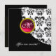 BLACK AND WHITE DAMASK MONOGRAM,red ruby,silver Invitation