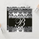 BLACK AND WHITE DAMASK MONOGRAM silver moonstone Invitation