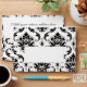 Black and White Damask Pattern Printed A7 Envelope Template. Black White Damask graphic design pattern makes this an elegant envelope for your special occasion. Envelope has a blank section on the front for your mailing address. Fully customizable. Personalize with your text, graphics, monogram and or photograph on the front, back and inside and outside flap of the envelope. Great for special occasions like weddings, birth announcements, graduations and everyday elegance in personal handwritten letters.