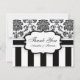 Black and White Damask Stripe Wedding Thank You Card
