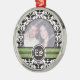 Black and white damask wedding photo ornament featuring your precious photo framed in black and white damask pattern black and green bands and your initials in a circle.