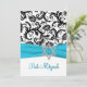 Black and White Damask with Aqua FAUX Ribbon Invitation