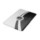 Elegant white and black dynamic shapes with floral damasks and customizable monogram inside white and black circle frame.