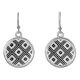 These drop earrings are decorated with a contemporary abstract pattern of retro black and white diamond squares.