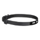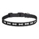 This classic looking pet collar has a row of white cartoon dog bone shapes on a black background color.