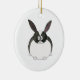 A picture of a rabbit. This cute bunny is a dutch rabbit in black and white. The image printed on this item was created from a hand drawn and painted picture.