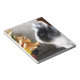 Portrait of black and white dwarf rabbit (Mammal) near yellow daisies