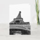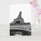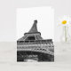 Neat black and white photo of the Eiffel Tower in Paris. Fun blank greeting card for you to use.