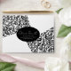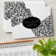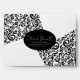 This envelope design carries a striking and timeless appeal with a bold black background contrasted by elegant white damask floral patterns at the corners. The center features a white oval frame that highlights the recipient’s name and address in black, creating a formal and sophisticated appearance. The monochrome palette enhances its versatility, making it suitable for weddings, formal dinners, gala events, and upscale correspondence.