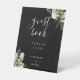 Black And White Elegant Floral Greenery Guest Book Pedestal Sign