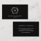 Simple and elegant monogram business cards with a white monogrammed floral wreath on a black background. Designed for florists, interior designers, stylists and other creative professionals.