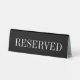 Black and white elegant reserved table sign. Handy small tent shape reversible signs for wedding, restaurant, reception, dinner party, cafe, bar, diner, office, lunch room and more. Custom colors with personalized text on two sides.