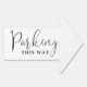A black and white elegant script parking direction sign. Designed by Thisisnotme©