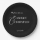 Black and white elegant simple minimalist wedding monogram printed paper plates template bride and groom names wedding plates personalized tableware decor