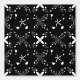 The design features an abstracted geometric artwork in a black and white elegant pattern.