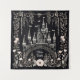 A whimsical black and white illustration of a fairytale castle with whimsical florals.
