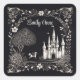 A whimsical illustration of a fairytale castle with a floral border and a galloping horse. Perfect for a little princess!