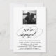 You can pick to download your Black And White Fancy Script Engagement Party Invitation from 4 file types: PNG, JPG, Standard PDF, and Print PDF. These 4 file formats have been selected so they cover all your inviting needs. PNG and JPG are great for sending your invitation digitally and PDF and Print PDF are great if you want to print your invitation yourself.