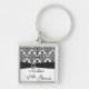 This chic black and white damask keychain with faux ribbon and jewels matches the wedding invitation shown below. It would make an ideal wedding party gift, or a lovely keepsake for your Father-in-law. You can change the text to anything you want, and you can change the size and shape of the keychain. If you need any assistance with personalizing this, email niteowlstudio@gmail.com.