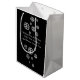 This cute snowman gift bag is customizable for you to add your own message The short christmas verse on the back of the bag is also customiazable. The smiling snowman is wearing his favorite black hat and back and white striped scarf, he's looking down at his christmas stocking that's hanging on a tree branch waiting for santa to fill it with special gifts. In the background the stars are shining and the trees are covered in snow. This original seasonal gift bag makes a great festive presentation for most gifts. The original snowman illustration is a pen and ink drawing, he makes a cool trendy black and white gift bag.