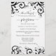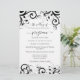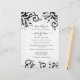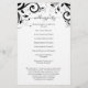 Festive and fanciful black and white swirl personalized wedding program. Decorative swirls with leaves and roses, and beautiful fonts with swirl ligatures. Simple, modern and classic clean wedding programme, customize with your schedule of events, names, and on the back add your wedding party names and titles and a special message from bride and groom to guests.