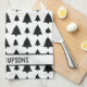 Black And White Fir Christmas Tree Pattern & Text Kitchen Towel