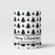 Black And White Fir Christmas Tree Pattern & Text Pillar Candle