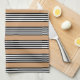 Black and white five stripe pattern with tan kitchen towel