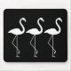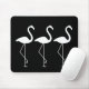 Bright white flamingos decorate this black mousepad, making it a perfect reminder of vacation or summertime fun.