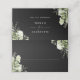 This elegant black and white botanical greenery floral wedding folded place card can be personalized with your names and special date on the reverse. Designed by Thisisnotme©