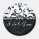 Black and White Victorian Medieval Renaissance Fancy Swirls Royal Black Damask Floral Abstract Swirl Wedding Bride and Groom Magnet.