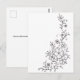 A decorative black and white ornamental lineart design of flowers on a postcard