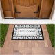 This whimsical black and white tile design doormat is classic and cute! The perfect way to warmly welcome friends and family to your home! This doormat reads "welcome".