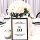© 2023 Socialite Designs Inc. Elegant black flourish design with white background table number card. Add elegance to your tables with these table number cards so that your guests can find which table they are sitting at.
