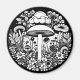 Retro ai art with black and white line art mushrooms and flowers botanical art.