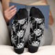 Dark socks with a botanical pattern. White flowers on a black background. Inspired by floral vintage wallpaper.