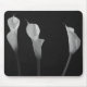 Elegant still life of Calla Lilies. The black and white photo of the flowers is simply beautiful photography. The dark background behind the lily brings out the beauty in the floral arrangement. This is a great floral photograph for a mouse pad design.