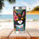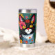Black and White Folk Art Cat and Flowers Whimsical Insulated Tumbler