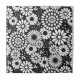 This simple botanical pattern features stylized white flowers, dots, leaves and spiraling vines on a black background. The design has a strong retro and chic feel.. This is a Folk Art inspired print with modern style, perfect for those who love bold but elegant flower designs.