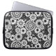 Black and White Folk Flowers Chic Retro Pattern Laptop Sleeve