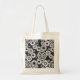 Black and White Folk Flowers Chic Retro Pattern Tote Bag